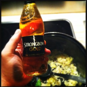 Whack the heat up to maximum pour in the cider and bring to the boil, then tip in the mussels and place a lid on the pan.give it a good shake, then cook the mussels for 3-5 min`s, shaking the pan occasionally, until all the mussels have opened. Discard any that haven’t.