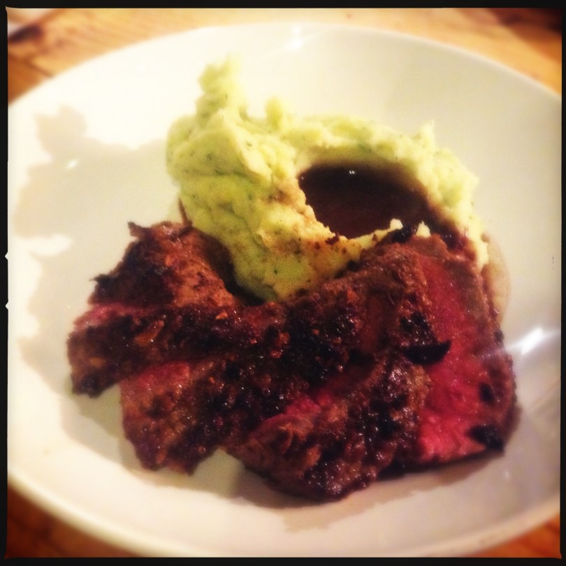 Recipe of the Day: Porcini Crusted Fillet Steak with Parsley Garlic mash and a Red Wine Reduction.