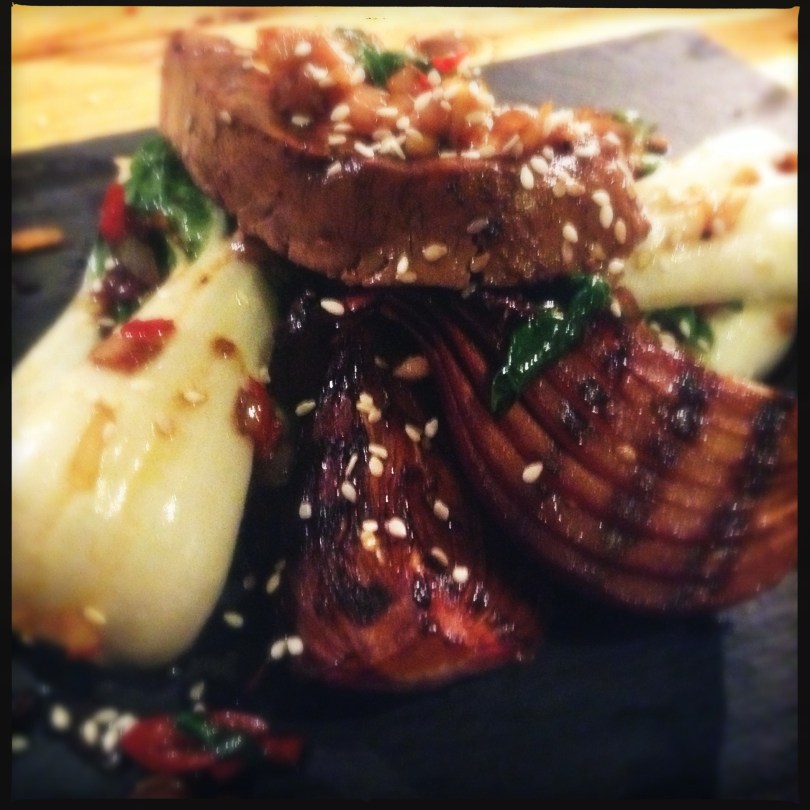 Soy and Lime marinated Chargrilled Tuna with a Spicy Bok Choi Stir fry