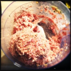 3, Add the minced beef and pork to the mixture and pulse to form a paste. Use your hands to mould the mixture into small balls about the size of ping pong balls , leave to rest in the fridge for min 30 mins .