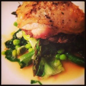 Roasted Crispy Chicken with Braised Spring Vegetables