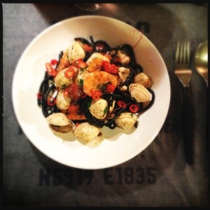 400 g dried spaghetti, for a more dramatic dish I’m using squid ink spaghetti