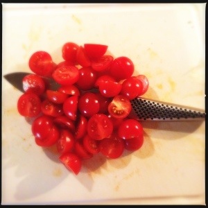 3. Stir the tomatoes into the chickpeas with the lemon juice, 4 tablespoons of the olive and some salt and pepper to taste.