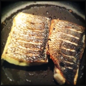 4 x 175g sea bass fillets( wild line caught is my preference) , skin on and scored to prevent curling.