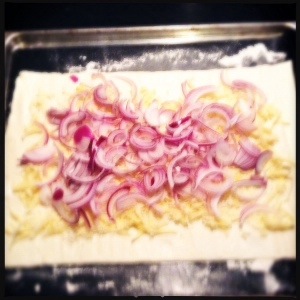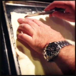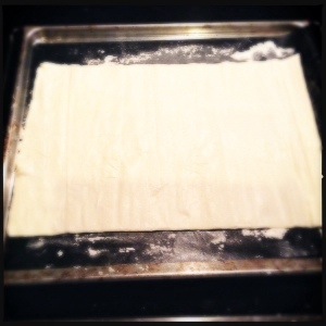 2.Place the sheet of puff pastry on a baking tray covered with parchment paper.