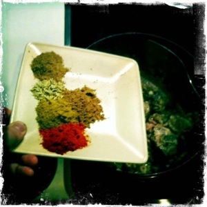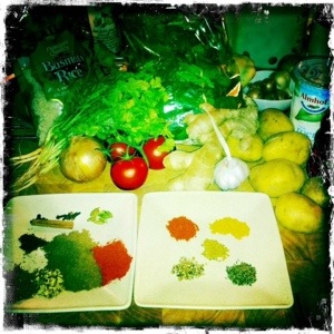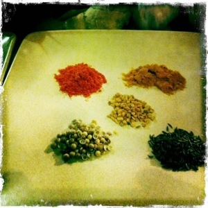 • ½ tsp each: cumin, crushed coriander seeds, turmeric, chili powder and fenugreek