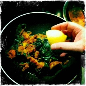 10. Im serving this with basmati rice cooked in coconut milk ,Saag Aloo, naan bread and mango chutney