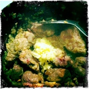 5. Add the garlic and ginger paste to the lamb mixture, stir well to combine, then reduce the heat and continue to cook for 3-4 minutes, stirring regularly.