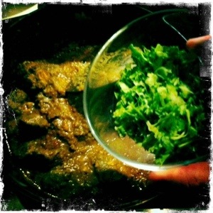 8. Add enough boiling water to almost cover the lamb, bring the mixture to the boil, then reduce the heat to a simmer and simmer or 8-10 minutes, or until the lamb is cooked through.