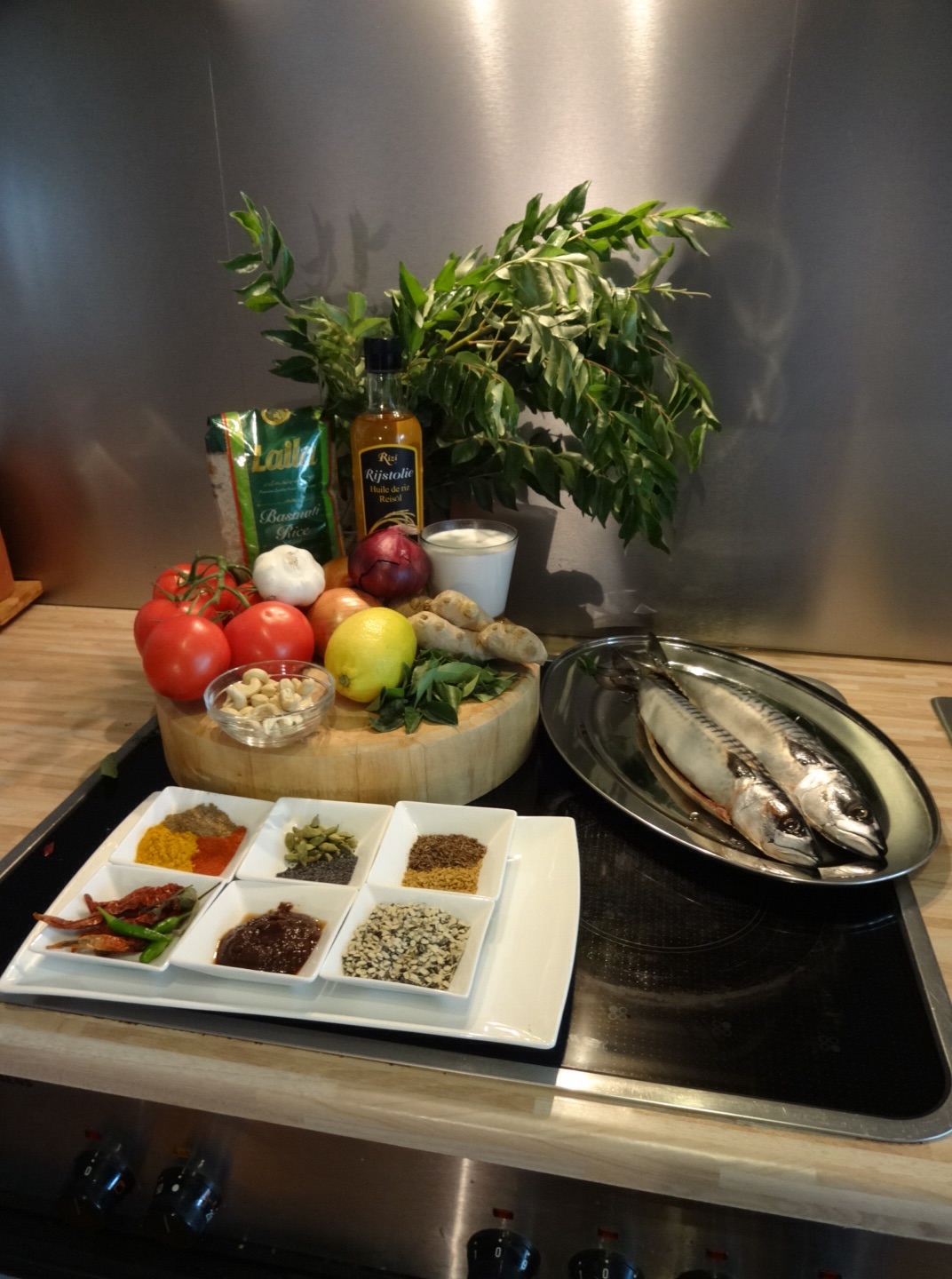Coconut mackerel curry with lemon rice