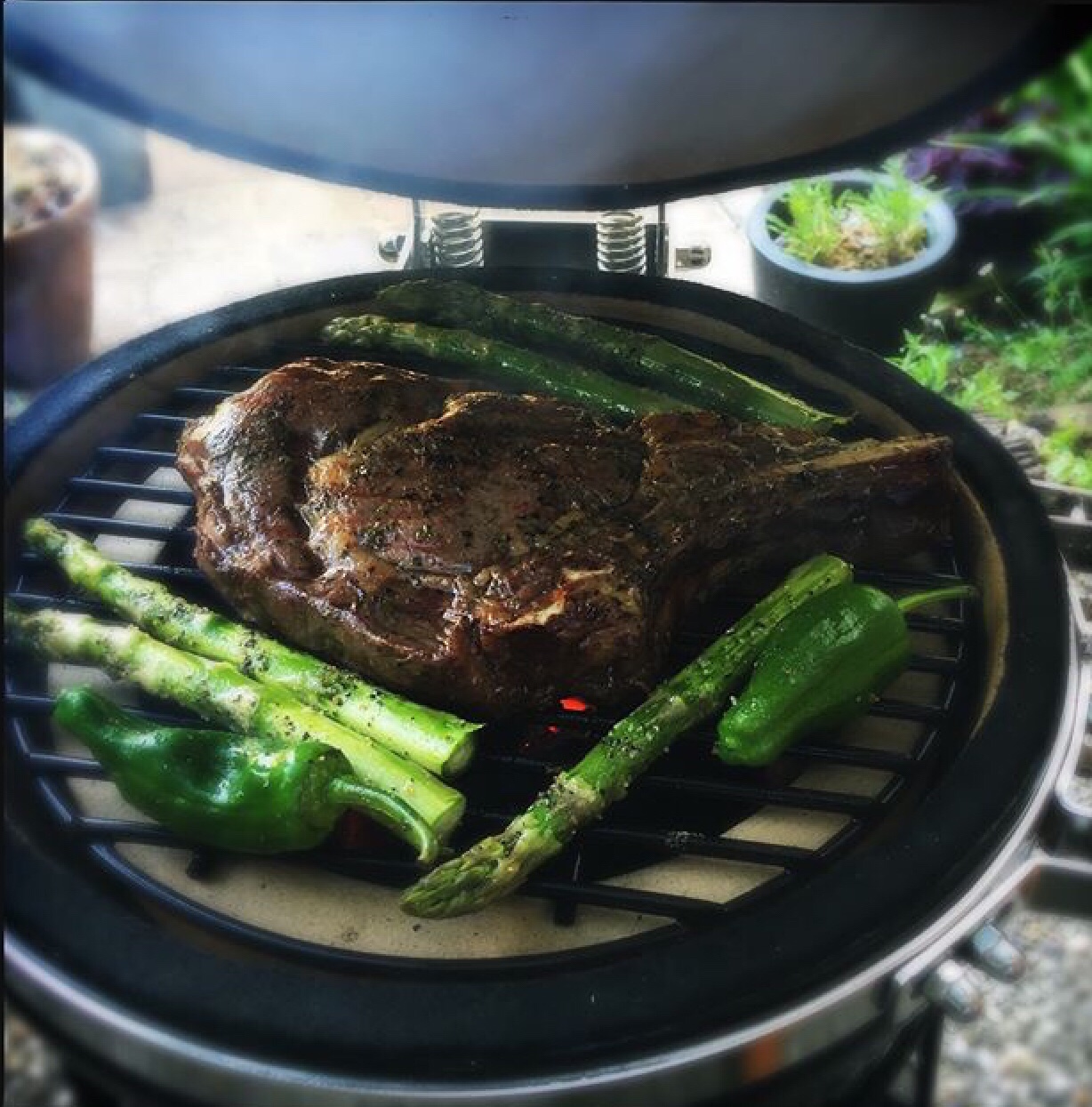 Butter poached Cod with wild garlic miso and grilled asparagus